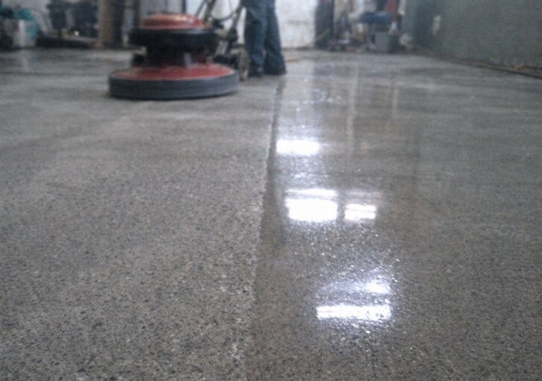Proceso final que realza el brillo y la apariencia del piso mediante selladores y técnicas de pulido fino, mejorando la estética, reduciendo la porosidad y facilitando el mantenimiento sin alterar la estructura del concreto.